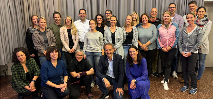 Hinten links nach rechts: Debora Lüssi, Zdenka Rüedi, Yolanda Tscherter, Manu Heller, Marco Desiderio, Karin Mühlemann, Vera Brändle, Roy Rüttimann, Jasmin Salzmann, Sändy Schaufelberger, Patrizia Hürlimann, Fabienne Haas, Martin Botey, Daniela Wittensöldner, Christian Weber, Alexia Moser, Christopher Steffens, Bea Schwarzenbach
